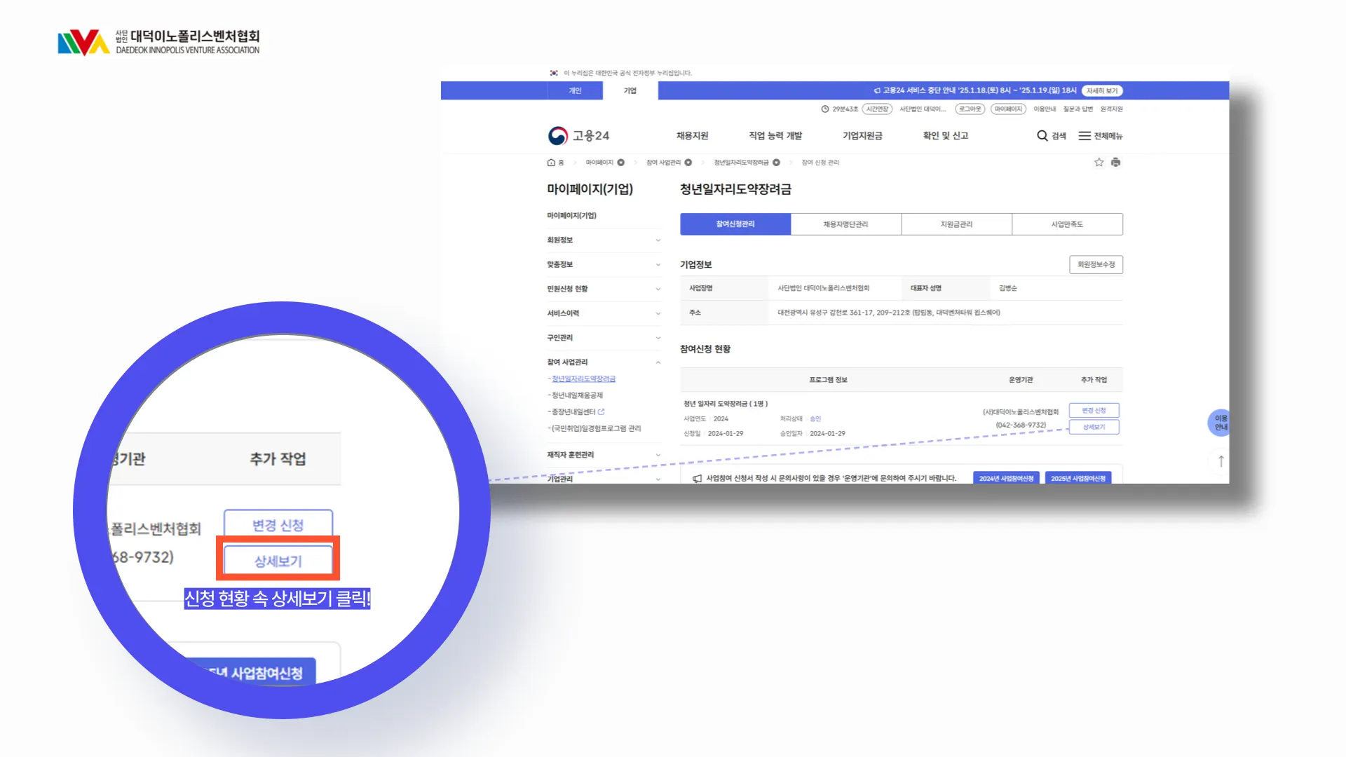 이전 절차인 [고용 24] 도약장려금 페이지 들어오기 에서 안내드린 것처럼 도약장려금 페이지를 먼저 들어와주세요!