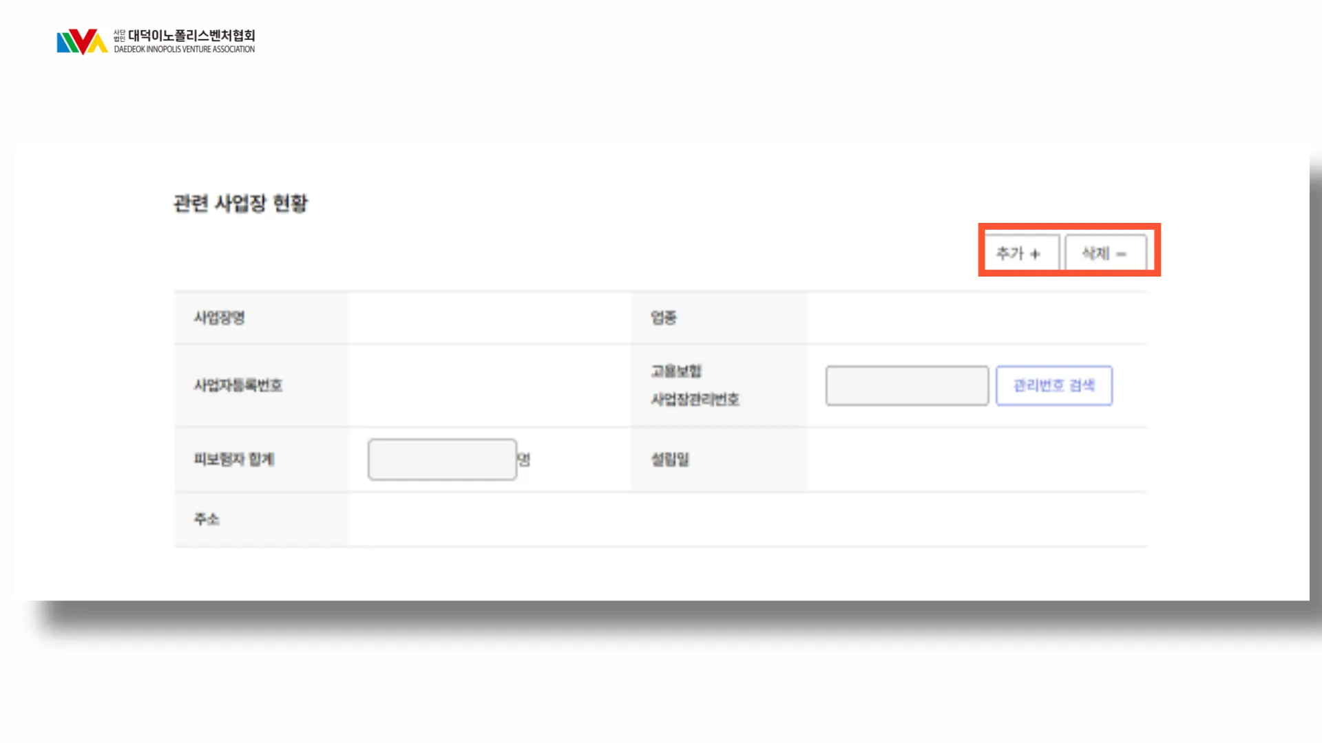 같은 법인에서 여러 사업장(고용보험관리번호 기준)을 운영하는 경우 관련 사업장을 추가해주세요.