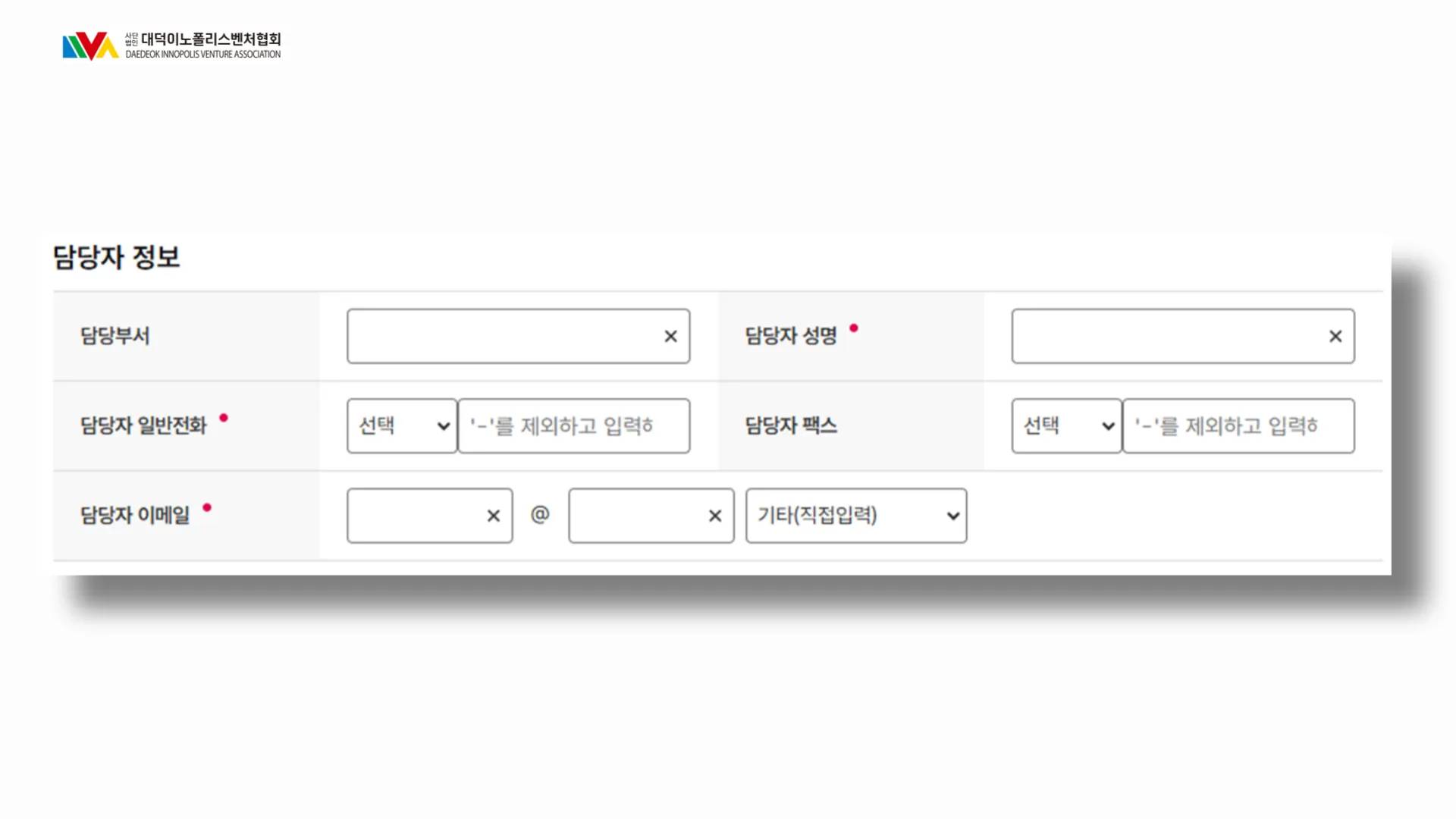 담당부서, 성명 등 담당자 정보를 기입해주세요.
