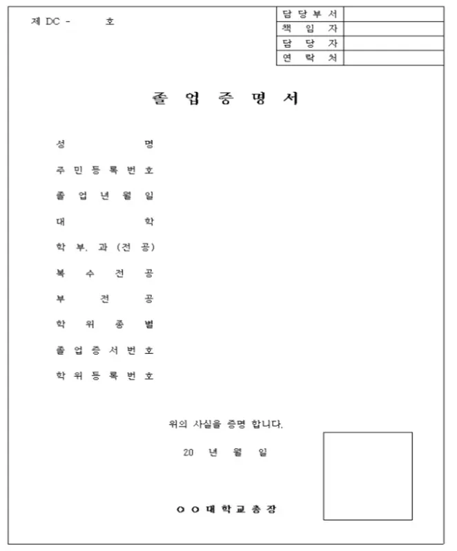 졸업증명서는 각 학교마다 양식이 다르니, 위 양식은 참고만 해주세요!